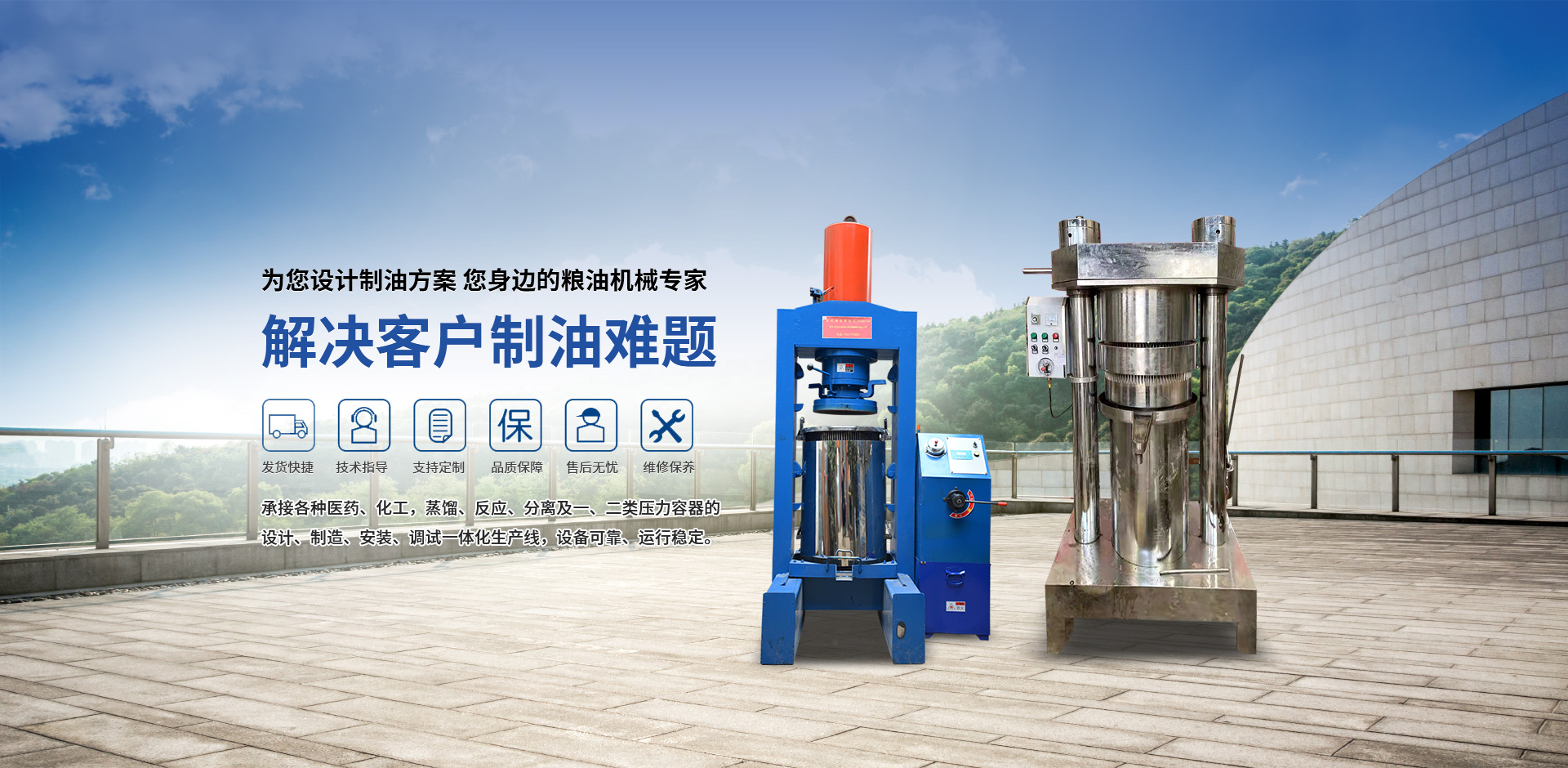 經過近二十年的發展壯大,大力推進科技創新,積極調整產品結構,本公司業務主要涵蓋榨油設備、濃香型山菜油設備、濃香型花生油設備、濃香型菜籽油設備、濃香型胡麻油設備。